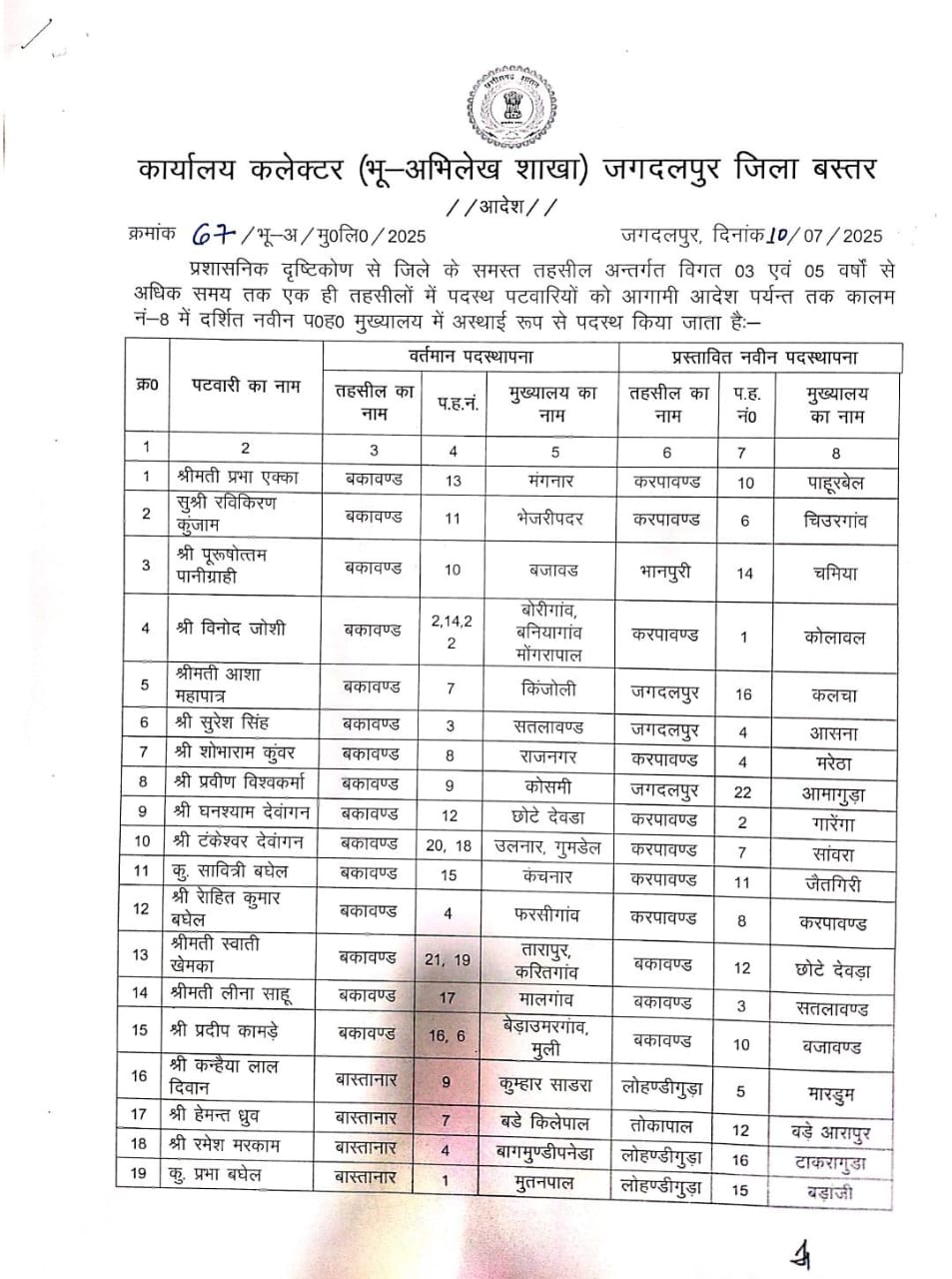 बस्तर में पटवारियों के बंपर तबादले… 121 पटवारी एक साथ इधर से उधर!
